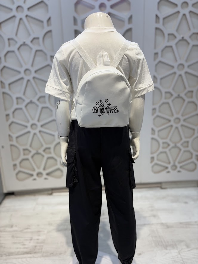 Beyaz Tişört Siyah Paraşüt Pantolon ve Çanta 3’lü Alt Üst Takım Unisex