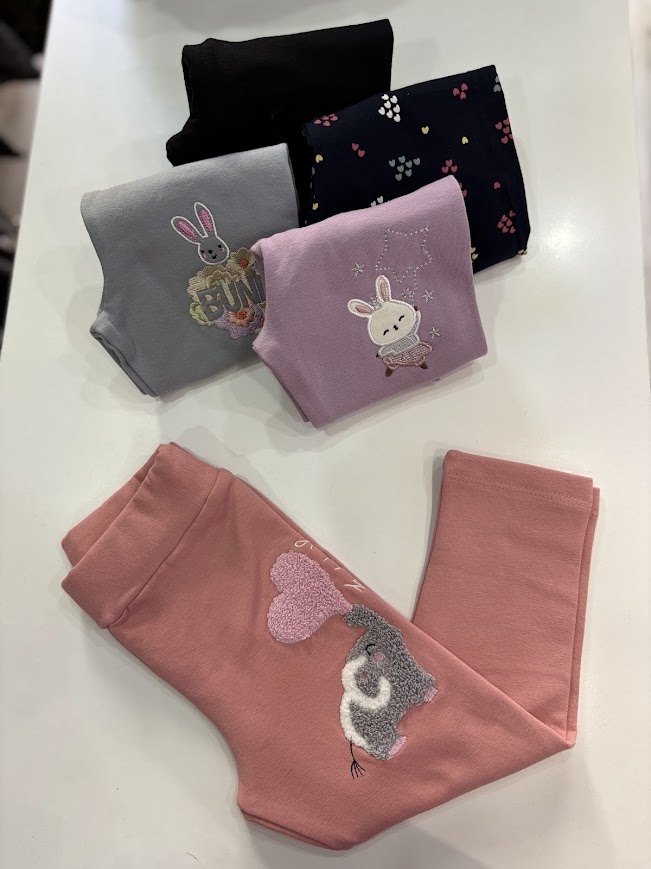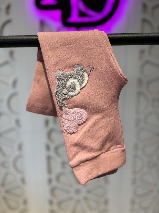 Fil İşlemeli Pudra İçi Şardonlu Tayt 1-4 Yaş Kız Çocuk