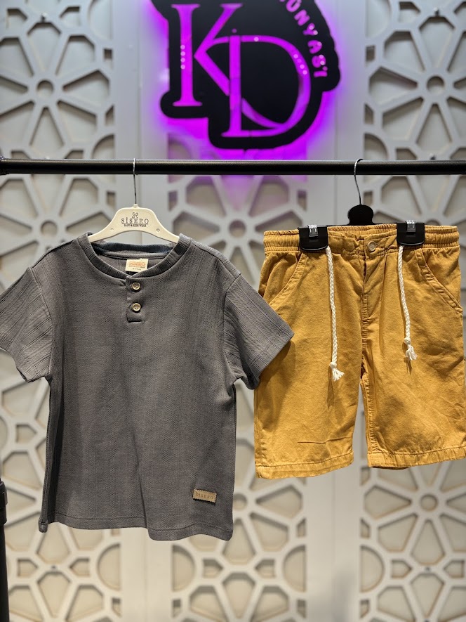 Kısa Kollu Gri Tişört ve Sarı Şort ‘2li Alt Üst Takım