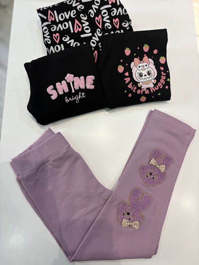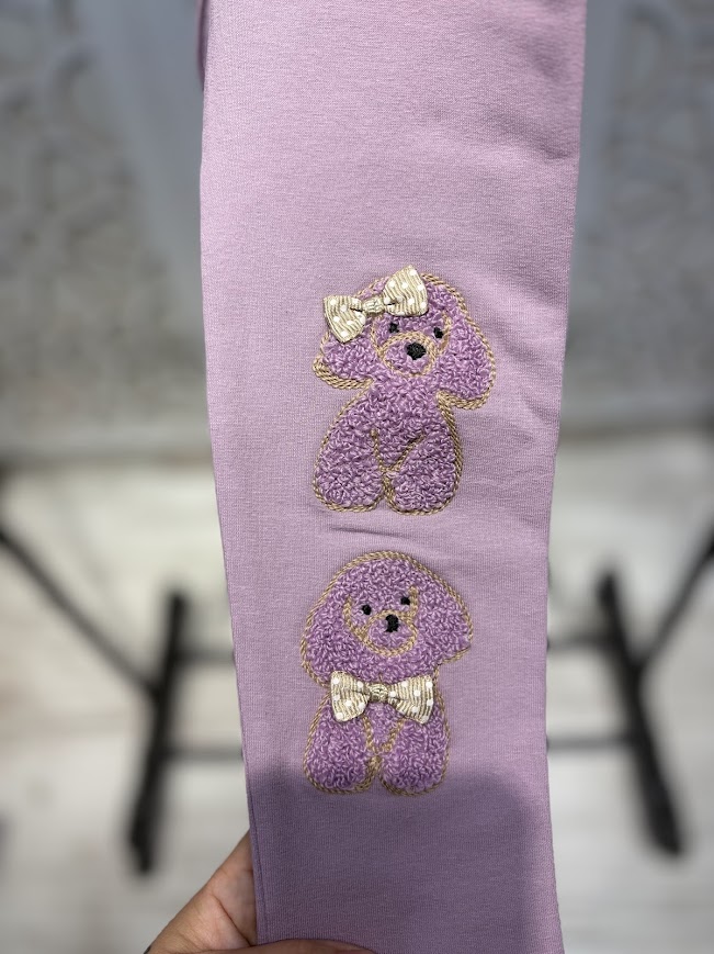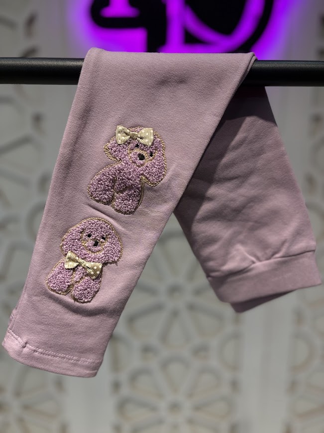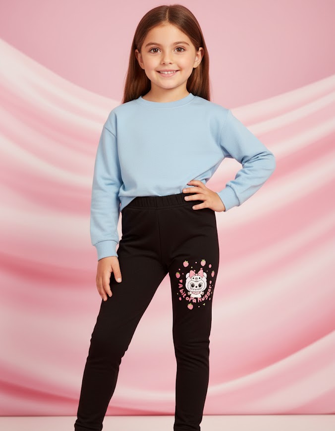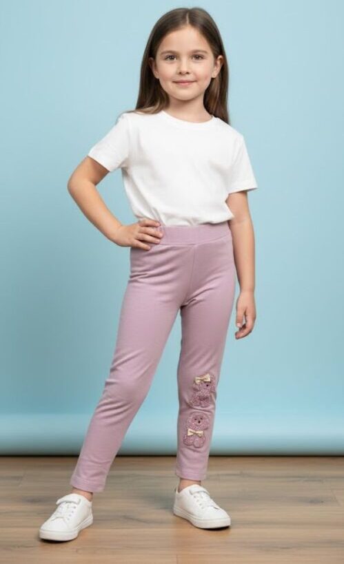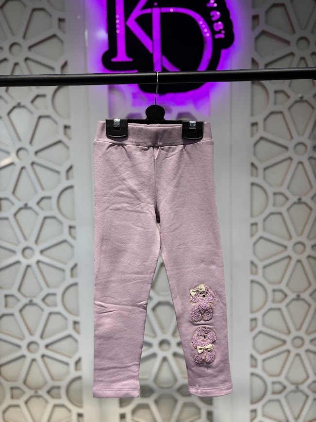 Köpekçik İşlemeli İçi Şardonlu Esnek Rahat Tayt 4-9 Yaş Kız Çocuk