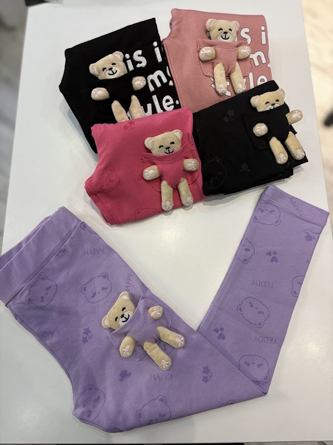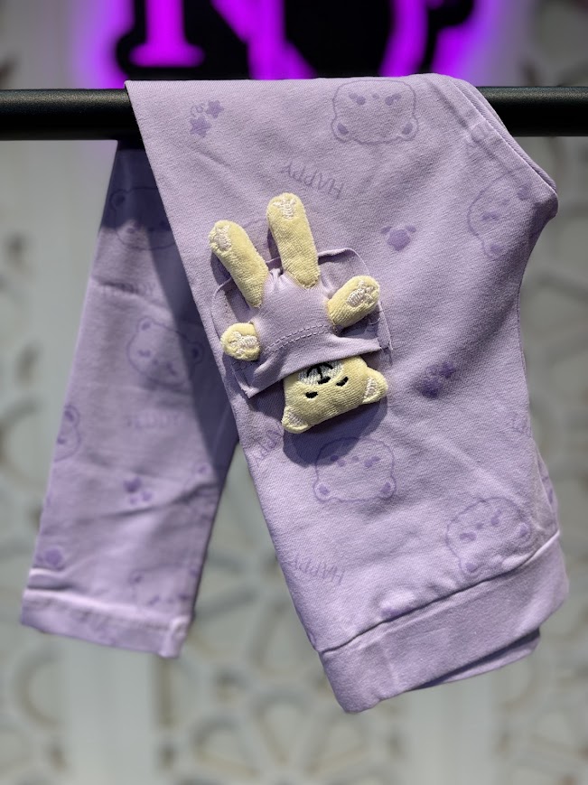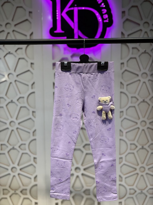 Mor Ayıcıklı Mevsimlik Tayt Kız Çocuk 4-9 Yaş