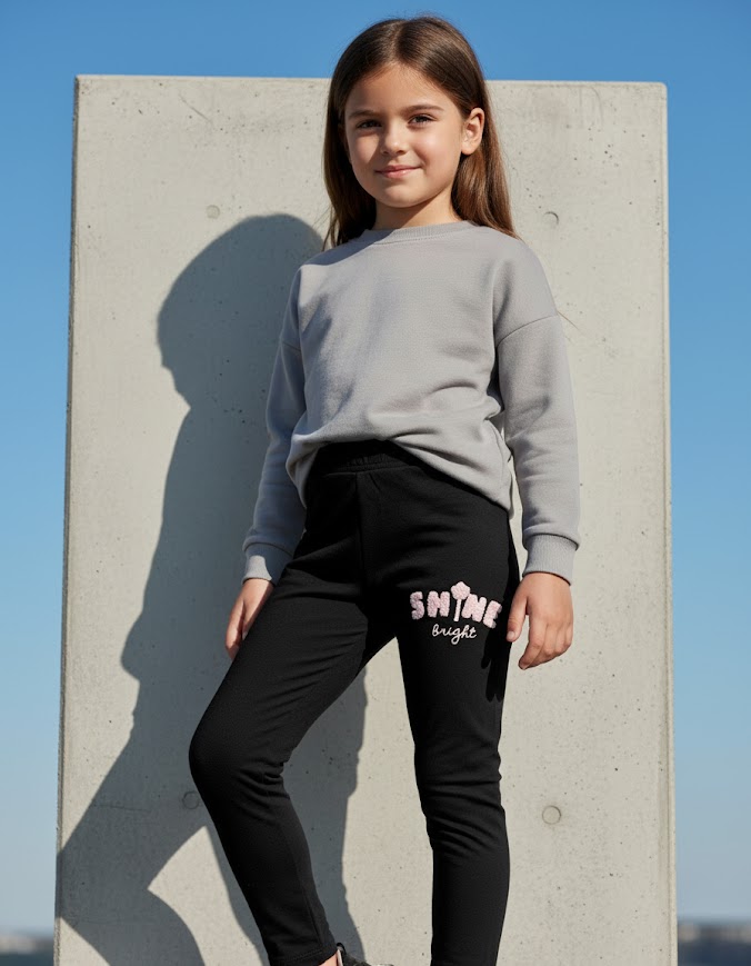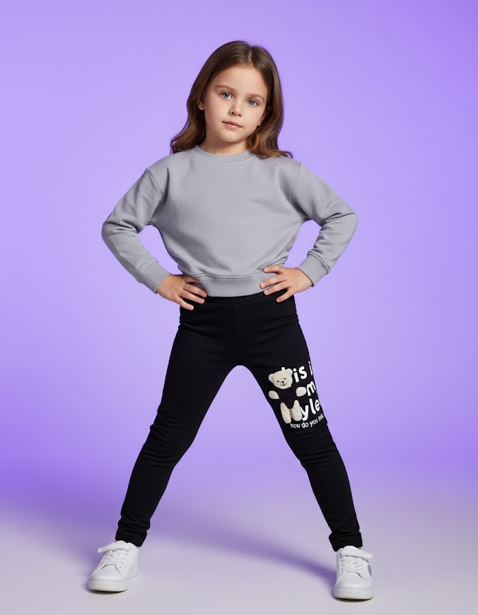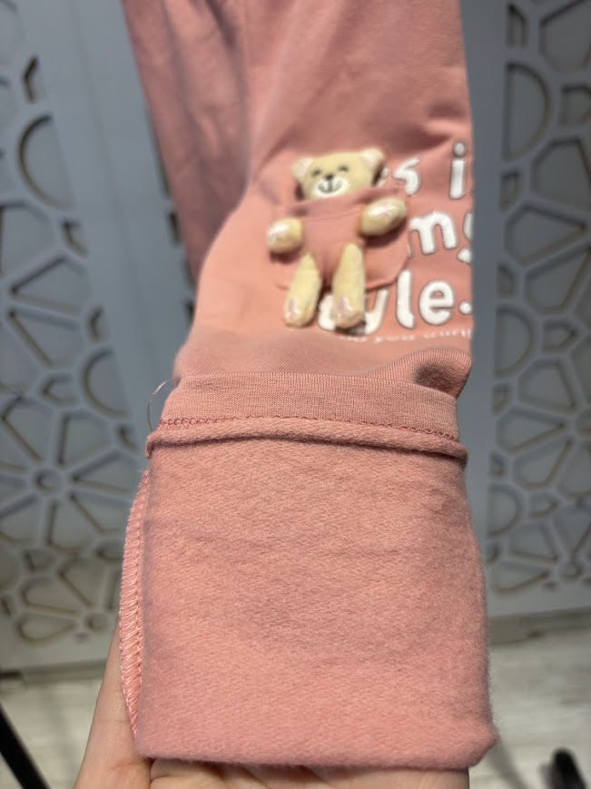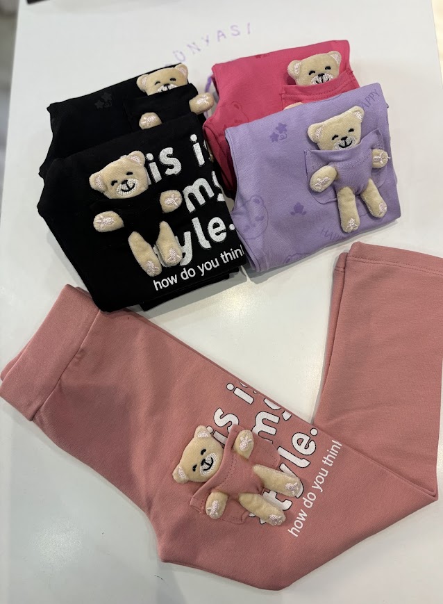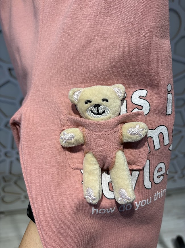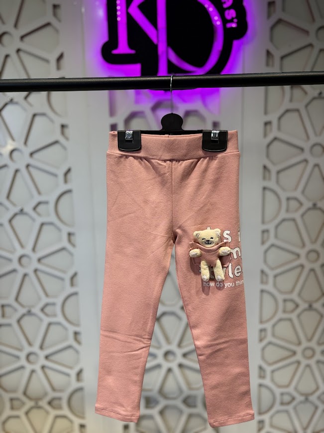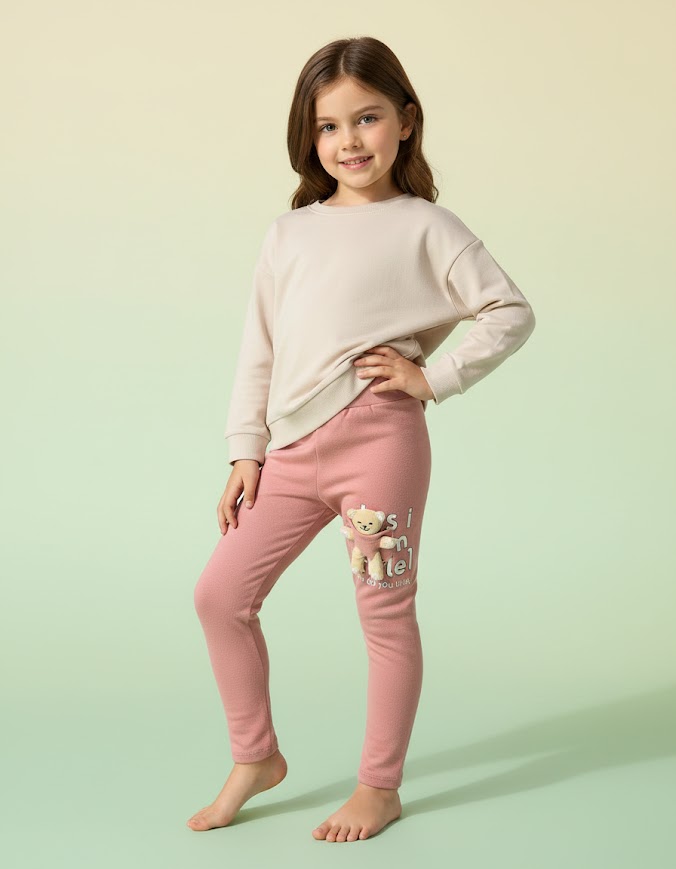Pudra Ayıcıklı İçi Şardonlu Esnek Rahat Tayt 4-9 Yaş Kız Çocuk