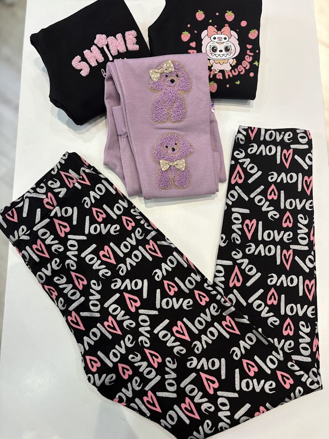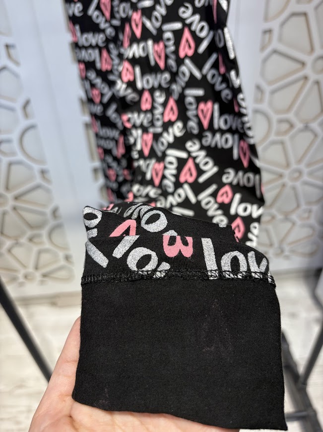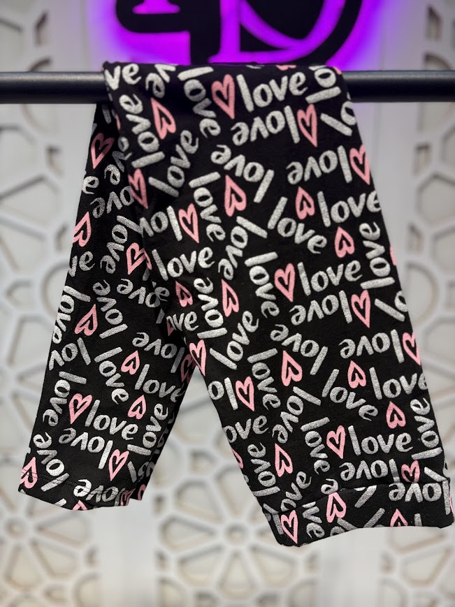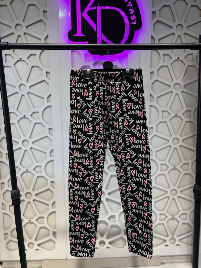 Siyah LOVE Baskılı Mevsimlik Esnek Rahat Tayt 10-13 Yaş Kız Çocuk