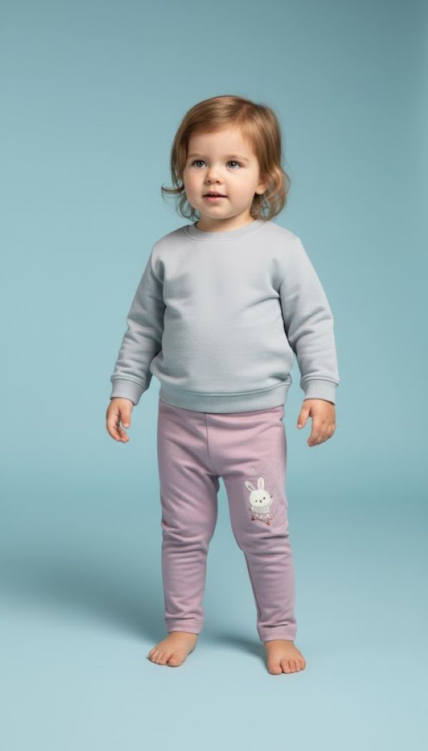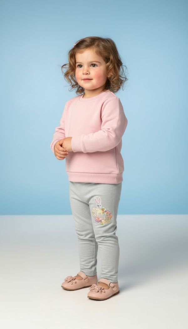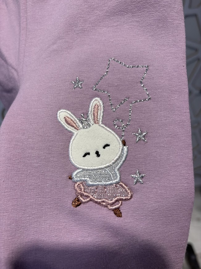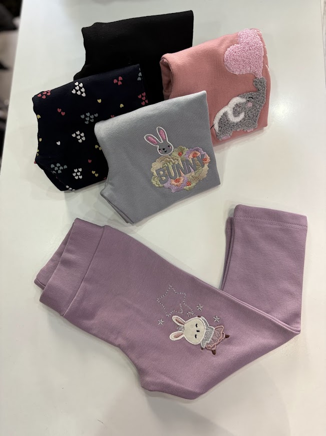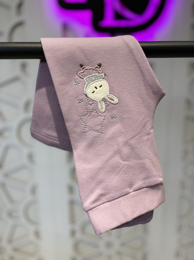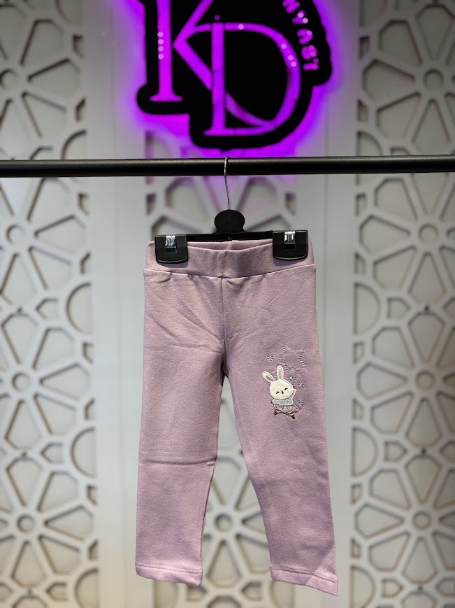 Tavşan İşlemeli Mor İçi Şardonlu Tayt 1-4 Yaş Kız Çocuk